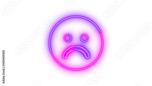 Fototapeta premium Neon face-frown symbol icon glowing with transparent background