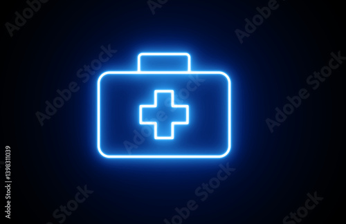 © MstBeauty, Obraz premium Neon First Aid Kit free icon. First Aid Kit and Med Kit Icon on black Background