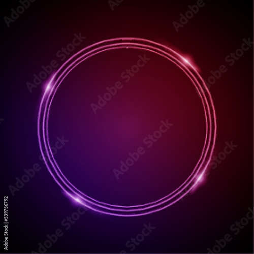 Fototapeta premium Neon Frame with Glow, and Sparkles. Electronic Luminous Circle Frame in Pink Colors, for Entertainment Message or Promotion Theme on Dark Background