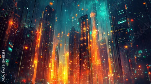 Fototapeta premium "Neon Future: A Cyberpunk City in Digital Light"