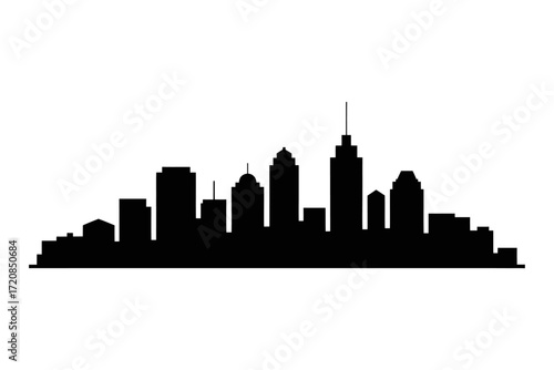 © Suraiya, Naklejka premium "Neon Future City Skyline Vector""Cyberpunk Futuristic Metropolis Illustration""Sci-Fi Neon Cityscape with Skyscrapers and Lights"
