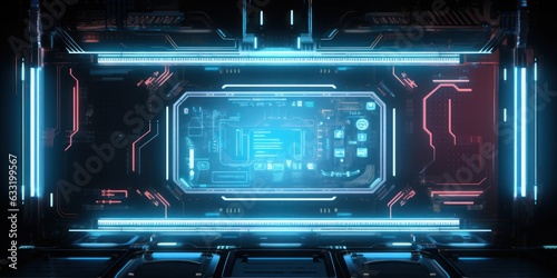 © Olmyntay, Obraz premium Neon future computer technology board for text mockup. AI generation