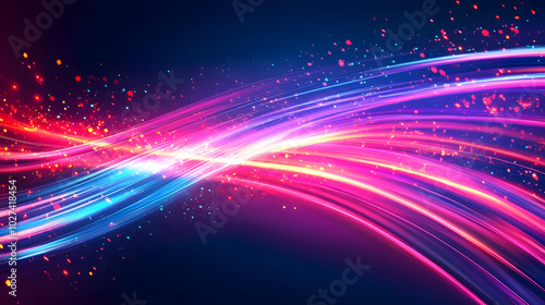 Obraz premium Neon futuristic stream of flashes on dark background.