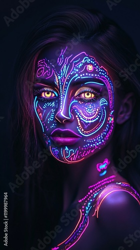 Naklejka premium Neon Glow Body Paint Portrait Woman Art