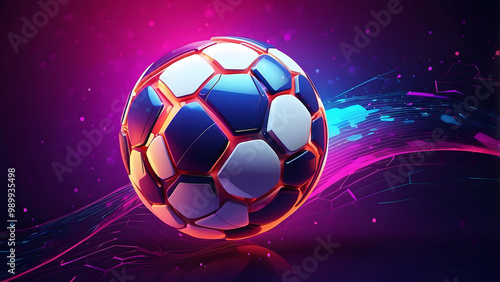 Fototapeta premium Neon Glow Football Championship, Abstract Soccer Ball on a Neon Background