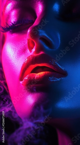 © Sakdecha, Fototapeta premium Neon Glow Lips and Face