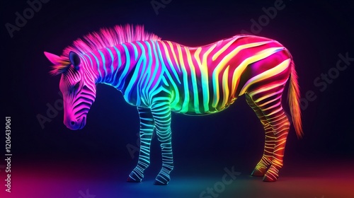 Fototapeta premium Neon Glow Zebra with Vibrant Stripes in Dark Background