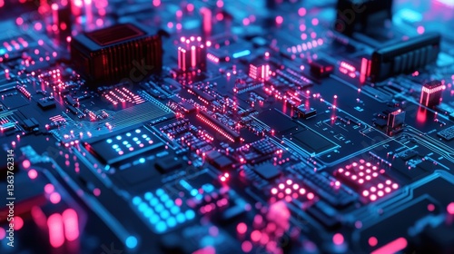 Fototapeta premium Neon-glowing AI-driven fintech network securing digital transactions and...