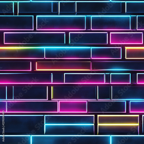 Obraz premium Neon glowing brick wall with vibrant colors and modern design, creating...