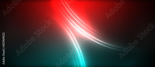 © antishock, Obraz premium Neon glowing circle rays, light round lines in the dark, planet style neon wave lines. Energetic electric concept design for wallpaper, banner, background