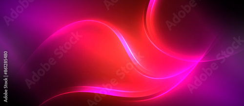 © antishock, Naklejka premium Neon glowing circle rays, light round lines in the dark, planet style neon wave lines. Energetic electric concept design for wallpaper, banner, background