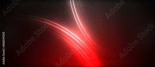 © antishock, Obraz premium Neon glowing circle rays, light round lines in the dark, planet style neon wave lines. Energetic electric concept design for wallpaper, banner, background