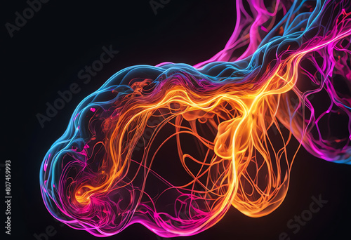 © XMind, Obraz premium neon glowing organic shaped liquid smoke background