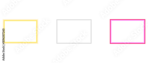 Fototapeta premium Neon glowing rectangular frame with red white yellow light effects isolated...