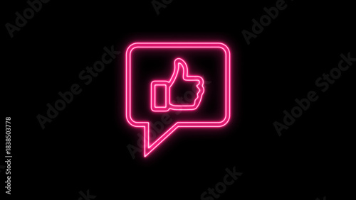 Fototapeta premium neon glowing thumbs up like icon inside a modern speech bubble, representing...