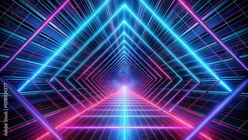 © Anna K@S, Obraz premium Neon glowing tunnel with blue and pink geometric lines
