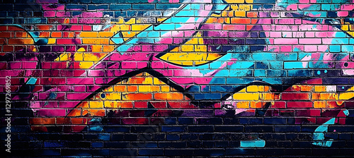 © Jack, Fototapeta premium Neon Graffiti Art Banner with Bold Colors and Brick Texture for Urban Design