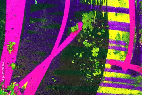 © Aleksandra Konoplya, Naklejka premium Neon graffiti art in pink, yellow, neon green. Y2K, 90s style, fluorescent, bold patterns, urban vibes. Street art, digital designs, creative backgrounds, modern urban visuals.