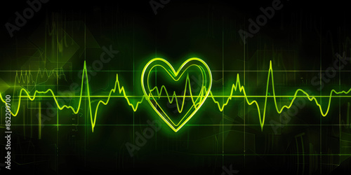 © Damianius, Naklejka premium Neon Green Heartbeat Line On Dark Neutral Background For Wallpaper Created Using Artificial Intelligence