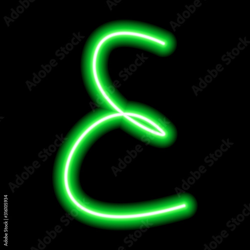 © Maria S, Fototapeta premium neon green letter "E" on a black background