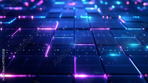 Obraz premium Neon Grid: Futuristic Cubes with Glowing Lines and Vibrant Hues