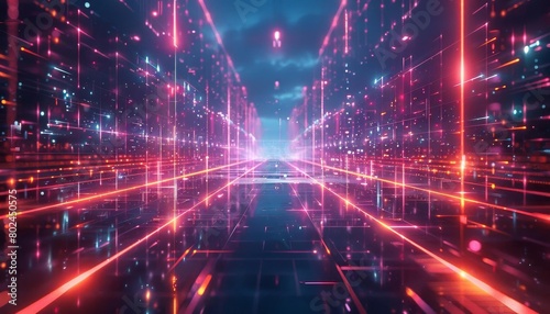 Obraz premium Neon grid landscape in a virtual environment, ideal for graphics design...