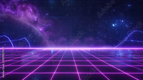 Obraz premium Neon Grid Under a Starry Sky