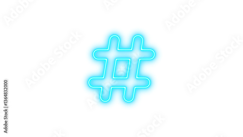 © مُحسَب, Fototapeta premium Neon hashtag icon cyan color glow with transparent background