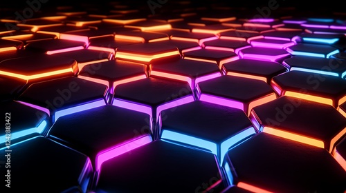 Obraz premium Neon Hexagon Grid Abstract Digital Pattern