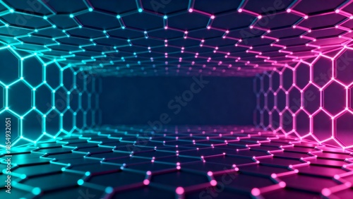 Obraz premium Neon hexagonal tunnel structure