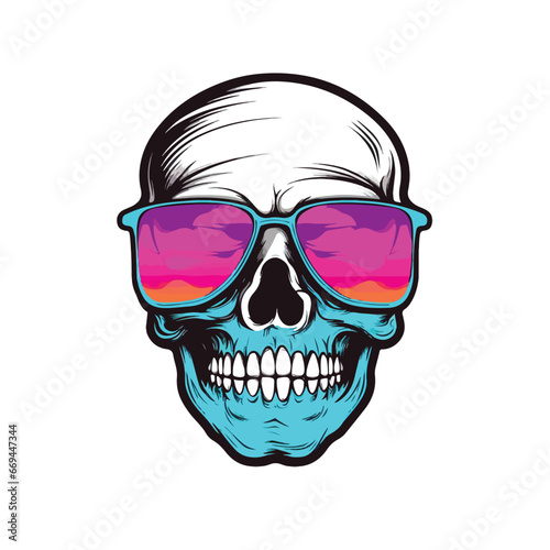 © Tharindu, Fototapeta premium Neon hipster skull with sunglass