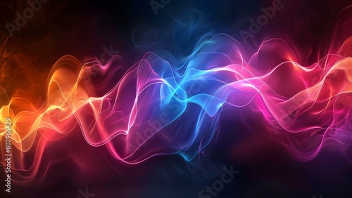 © Anastasiia, Fototapeta premium Neon holographic 3D wave design element on dark gradient background. Concept Neon, Holographic, 3D, Wave Design, Dark Gradient Background