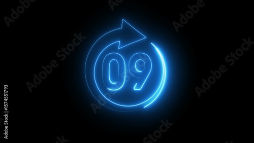 © mdsafiqul, Obraz premium Neon 09 hours illustration. Open 09 hours.