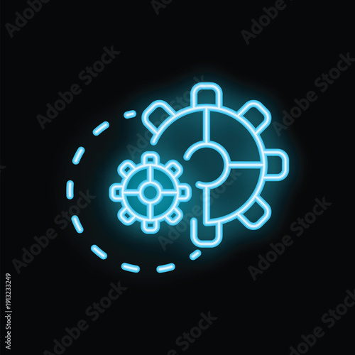 Obraz premium Neon icon of gears rotating in a continuous cycle, symbolizing automation and...