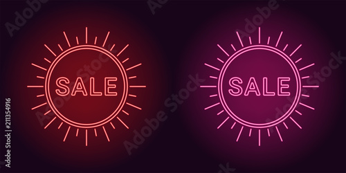 Fototapeta premium Neon icon of Red and Pink Sale badge