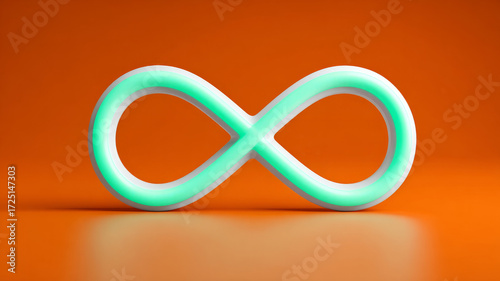 © SashaMagic, Fototapeta premium Neon infinity symbol on vibrant orange background, 3D render.