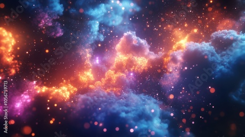 © Chatchanan, Obraz premium Neon-infused abstract background featuring dynamic swirling particles,