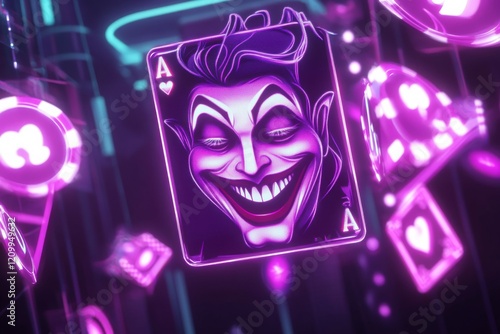 Fototapeta premium Neon Joker Card in Cyberpunk World
