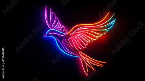 Obraz premium Neon LED Flying Bird with Multicolored Glowing Wings