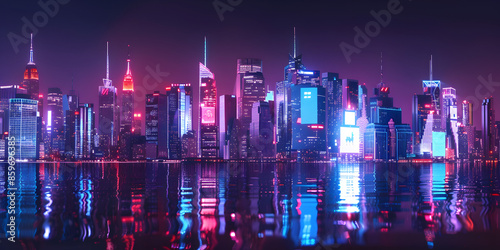 © Zape, Fototapeta premium Neon light cityscape at night.