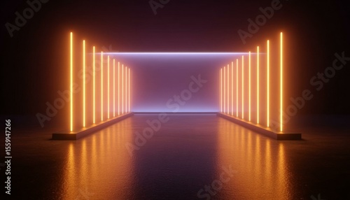 Obraz premium Neon Light Corridor Abstract Scene Design