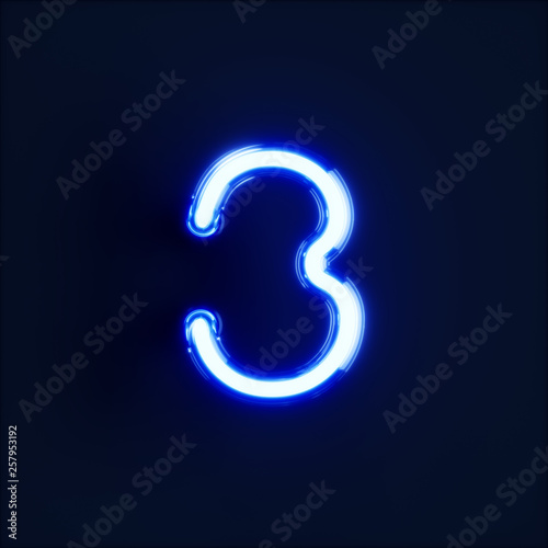 © Denys Rudyi, Fototapeta premium Neon light digit alphabet character 3 font