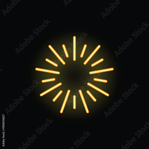 Obraz premium Neon light is forming a glowing sun with rays of light emanating from its center on a black background
