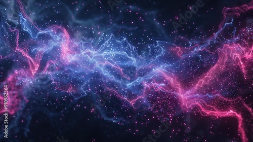 © Parsudi, Fototapeta premium Neon light particles forming a digital network on a dark background