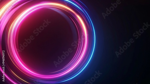 © Denys, Obraz premium Neon light trails forming glowing circle on dark background