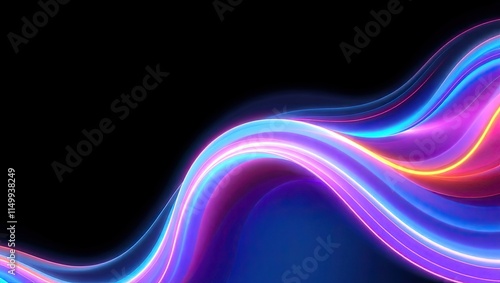 © WPDesignz, Naklejka premium Neon Light Waves. Vibrant Digital Energy. Ideal For A Desktop Wallpaper Or Background.