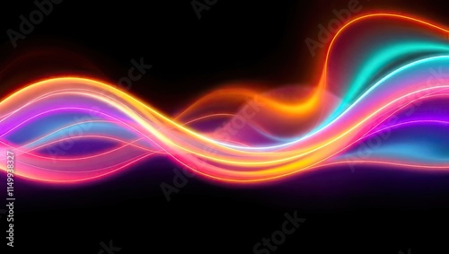 Obraz premium Neon Light Waves. Vibrant Digital Energy. Ideal For A Desktop Wallpaper Or...