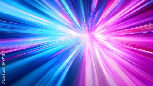 © plaksa, Obraz premium Neon light windows moving in to deep space center zoom effect, bright blue and pink. futuristic explosion of colors in the shape of blue windows. Modern futuristic. pattern-like scape. Background