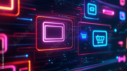 © Phichaphat, Obraz premium Neon Lights Abstract Technology Background