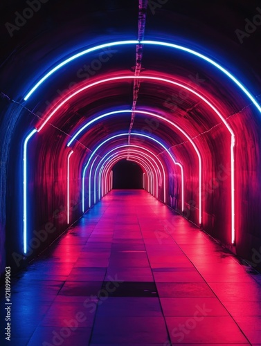 Fototapeta premium Neon lights create an immersive tunnel experience at night